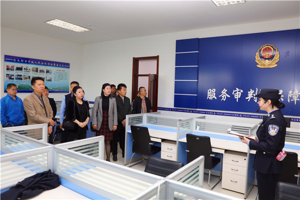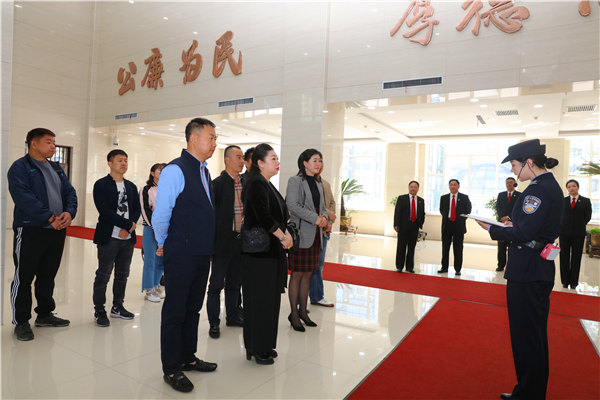 在一楼法院大厅,私营企业家们望向“公廉 为民 厚德 尚法”八字警训,深感威严肃穆。走进法警备勤室和警务监控室,通过法警装备展示和监控设备介绍,大家对法院全面的安保工作表示赞许。在诉讼服务大厅和安检通道,通过法院工作人员的介绍,大家对法院安检的必要性有了更加直观的认识,并纷纷表示支持和理解。在审判法庭,大家纷纷被科技法庭的各种设施所吸引,走上审判台坐在审判席前拍照留念。“这就是抓老赖的指挥部吧?”在执行指挥中心,一位男企业家指着大屏幕说到。数字法院、科技法院、智慧法院让我们法院干警坐在屋里就能查询到失信被执行人的信息,法院执行法官还能通过执行指挥系统在千里之外指挥执法干警对失信被执行人展开追踪抓捕。“我在电视里看见过,这里是专门发布重特大案件审判情况和发布典型案例的地方”,一位女企业家第一个走进法院新闻发布厅说到。大家坐在新闻发布席前合影留念,体验了一次法院新闻发言人的瞬间。
