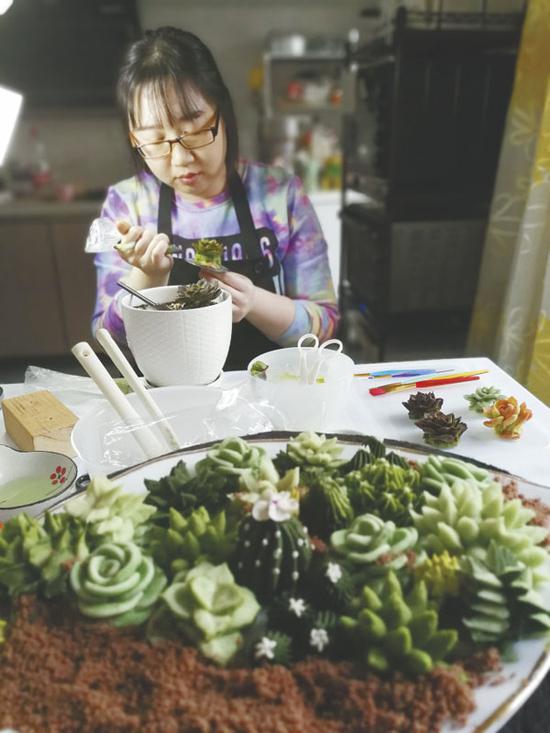 生活报3月19日讯 在别的蛋糕师眼中,做植物蛋糕也就需要一两种绿色,而在哈市的裱花师田璐眼里,绿色可以调出十几种,她做的“多肉”蛋糕,几乎可以以假乱真。