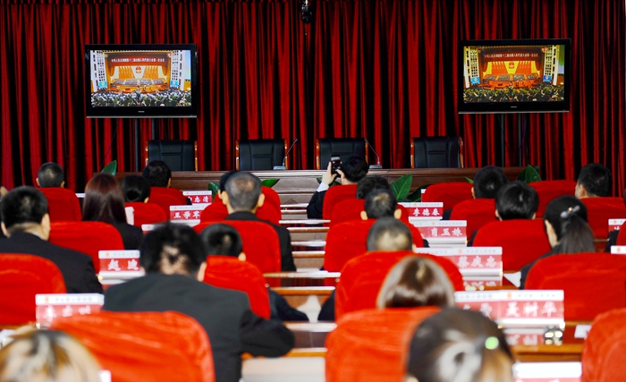 庆安管局组织收看第十三届全国人大第一次会议实况