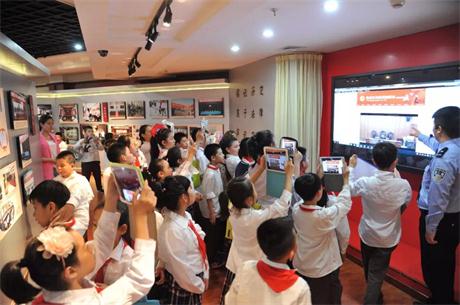 院史馆是同学们最喜欢的地方了,他们一边聆听着讲解员的讲解,一边举起iPad照相。
