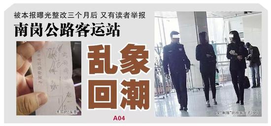 12、13日,生活报连续两日报道了南岗公路客运站乱象回潮一事,引起社会强烈反响。见报后,哈市主管领导高度重视,到南岗客运站视察情况。15日,哈尔滨市公路客运总站领导回应本报表示: “面对三个月后的再次曝光深感愧疚,南岗客运站管理确实存在问题。”同时哈市客运总站表示将对客运站进行全面、彻底的整改。