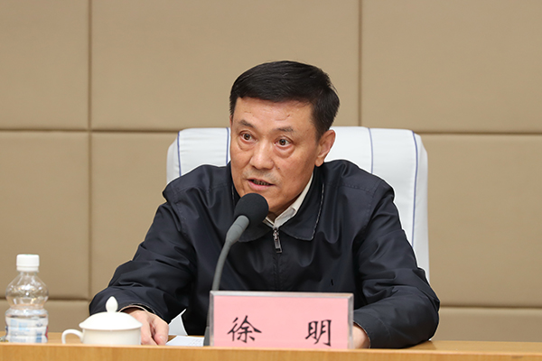 省委政法委副书记、省检察院党组书记、检察长徐明通报省委政法委挂牌督办的20起重点执行案件。朱丹钰 摄