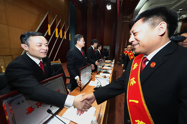荣立集体二等功的中级法院和全省先进中级法院代表领奖。朱丹钰 摄