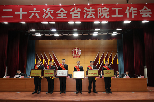 省法院党组书记、院长石时态为荣立集体一等功代表颁奖。朱丹钰 摄