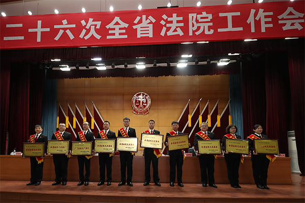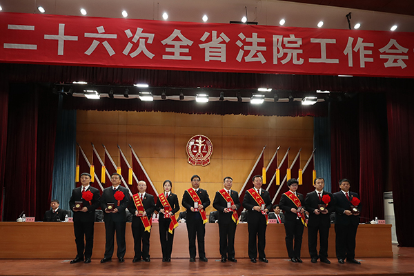 2月11日,省法院召开了第二十六次全省法院工作会议,深入学习贯彻党的十九大和十九届二中全会、中央政法工作会议、第二十一次全国法院工作会议和省第十二次党代会、省委十二届二次全会、省委政法工作会议精神,总结过去五年工作,表彰奖励先进,分析形势任务,研究部署当前和今后一个时期全省法院工作。党组书记、院长石时态要求,全省各级法院要坚持以习近平新时代中国特色社会主义思想为指导,把思想和行动统一到党中央、最高法院和省委决策部署上来,增强“四个意识”,坚定“四个自信”,紧紧围绕打好“六大攻坚战”、建设“五个新龙江”,忠实履行宪法和法律赋予的职责,努力让人民群众在每一个司法案件中感受到公平正义,全力为现代化新龙江建设创造安全的政治环境、稳定的社会环境、公正的法治环境、优质的服务环境。