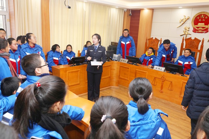 在解说员的引导下,学生和家长们依次参观了法院大厅、法警备勤室、警务监控中心、诉讼服务中心、安检通道、刑事审判法庭、少年审判法庭、执行指挥中心等场所。