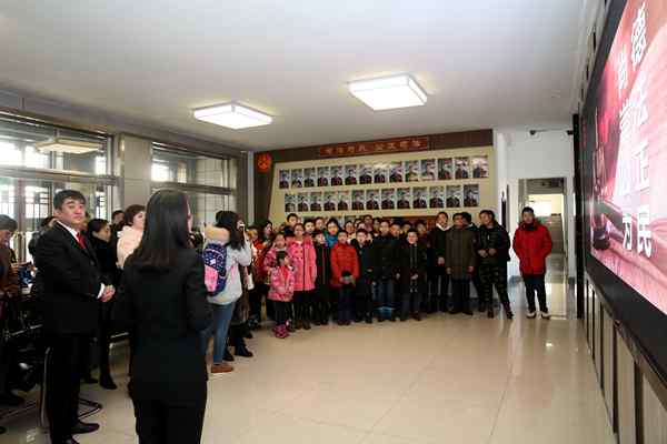 在法院工作人员的引导下,学生和家长代表们先后参观了书香法院文化长廊、刑事科技法庭、民事审判庭、诉讼服务大厅等场所。