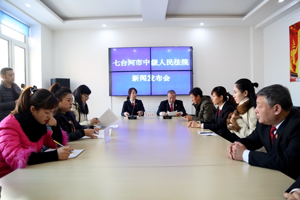 12月9日,七台河市中级人民法院在七台河市桃山区法院桃山中心人民法庭召开全市人民法庭工作新闻发布会。七台河市中级法院新闻发言人姜南介绍了年初以来全市基层法庭工作情况。桃山中心人民法庭庭长于天竺介绍了桃山中心人民法庭工作。