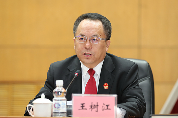 省法院党组副书记、常务副院长王树江主持会议并传达省委书记张庆伟在全省党员领导干部大会上的讲话精神 朱丹钰 摄