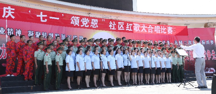 为庆祝中国共产党建党94周年,弘扬党的优良传统,讴歌党的丰功伟绩,6月28日,在东方红林业局“庆七一,颂党恩”大合唱比赛中,东方红林区基层法院20余名法官与辖区第五社区居民同台进行红歌联唱。