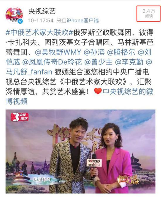 原标题:微博十万点击 2018中俄艺术家大联欢引爆央视荧屏