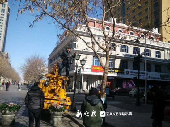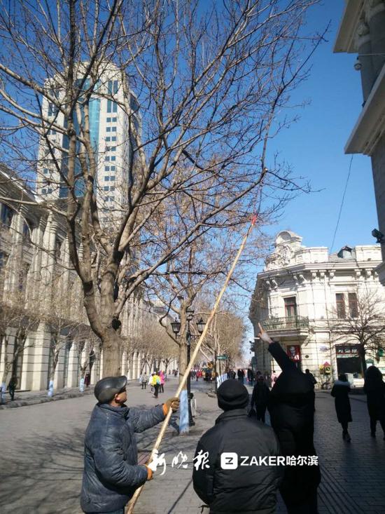 中央大街267棵糖槭“剃龙头” 手锯大剪刀齐上阵