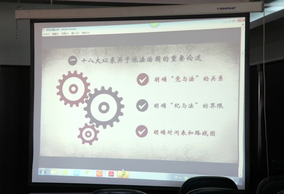 5月26日下午,鹤岗中院举办专题讲座,深化干警党性修养教育。讲座结合党的建设历程,联系法院干警实际工作,通过生动的PPT课件图文并茂展示了党的十八大以来关于依法治国的重要论述,回顾了党的十八届三中、四中、五中、六中全会等重要会议精神,深入浅出讲解了如何成为全面推进依法治国的捍卫者和践行者,再次分析解读了我省第十二次党代会精神和省委书记张庆伟的重要讲话精神,并带领干警重温了党规党纪、特别是《准则》、《条例》的核心内容,讲座内容全面系统,层次清晰,贴近工作实际,培训收效良好。