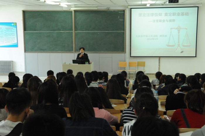 大庆中院副院长顾双彦应邀为大庆师范学院法学院新生作入学教育