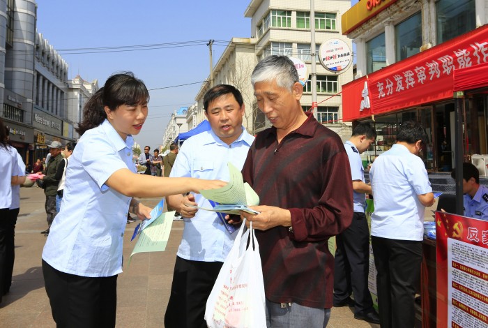 活动当天,由黑河中院党组成员、副院长刘锡英,党组成员、政治部主任王忠东带领立案庭、刑一庭、民一庭、司法科等庭科室的十余名干警,在中央步行街通过发放法制宣传资料,布置法律法规展板,详细认真解答疑问,开展社会综合治理和反家庭暴力法普法宣传活动,受到群众的称赞。