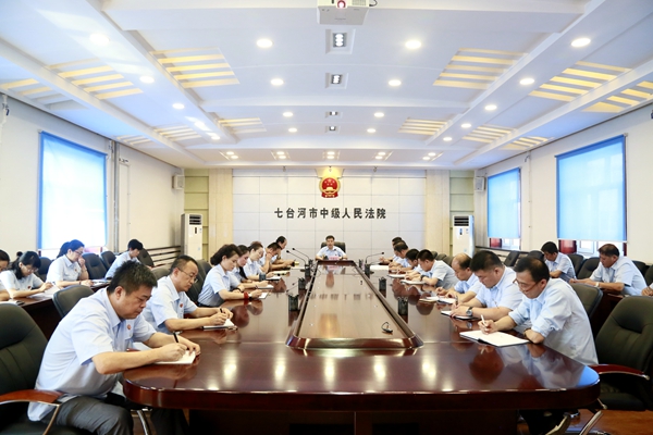 7月13日,七台河市中级人民法院召开党组中心组理论学习会议,贯彻学习周强院长在全国高中级法院院长学习贯彻习近平新时代中国特色社会主义思想专题培训班上的讲话精神,深入学习习近平新时代中国特色社会主义思想,努力让人民群众在每一个司法案件中感受公平正义。党组书记、院长朱晓天出席会议并领学。在家党组成员、各部门负责人参加学习。
