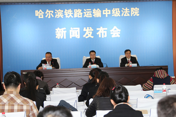 10月28日,哈尔滨铁路运输中级法院召开了新闻发布会,党组成员、副院长刘秋夫向与会的人民网、中国发展网、黑龙江电视台、黑龙江广播电台、黑龙江法制报、生活报、哈尔滨电视台等14家媒体记者通报了哈铁两级法院2012以来执行工作情况,重点介绍了制定《执行工作规范化管理意见》、开展专项活动、执结上级法院指定案件三个方面的情况;执行局副局长佟明仁公布了6起典型案例。会议由政治部主任郭云祥主持。