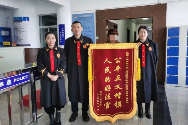 近日,案件当事人苗某将一面绣有“公平正义楷模 人民的好法官”锦旗送到了鹤岗中院,表达对办案法官公正司法判案、维护其合法权益的感谢。