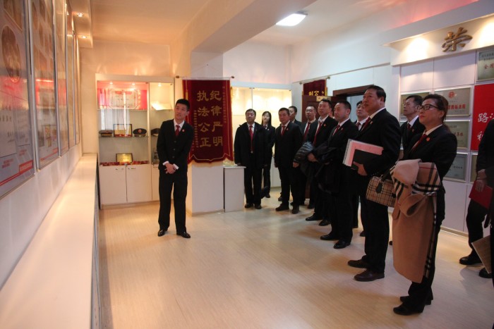 在荣誉室,讲解员介绍了中院的历史沿革和两级法院历年来取得的荣誉,当讲到中院的“镇院之宝”——在沙皇俄国修筑中东铁路时期使用保存至今的三把珍贵法椅时,法官们好奇地纷纷上前触摸,感慨时光变迁,表示要公正、为民、廉洁司法,努力维护国家大局稳定。