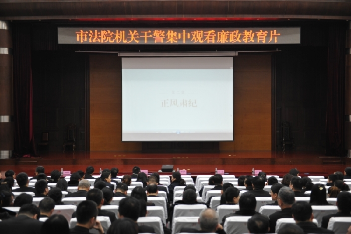 为进一步落实党风廉政建设工作任务,教育引导党员干部增强纪律观念和风险意识,筑牢拒腐防变思想道德防线,1月27日下午,哈尔滨中院组织机关干警集中观看廉政教育电教片《作风建设永远在路上》,院领导及机关全体干警在大法庭认真观看了视频资料。