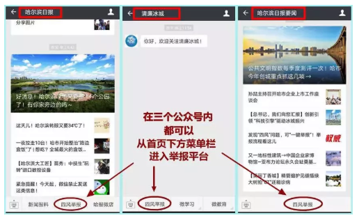 据了解,为鼓励群众积极关注身边“四风”问题,充分发挥社会监督、舆论监督的作用,哈尔滨市纪委进一步简化举报流程,未设置实名认证步骤,关注清廉冰城的微信用户均可参与举报。