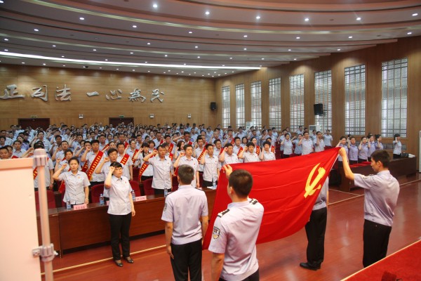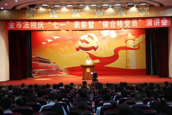 6月28日下午,鹤岗市中级人民法院举行庆“七一”表彰暨“做合格党员”演讲会。党组书记、院长王克贵与全市法院干警一同聆听演讲。