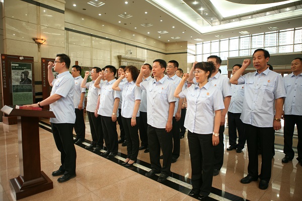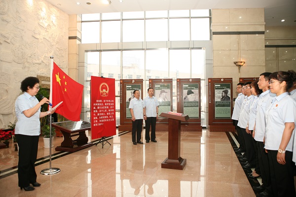 6月22日,省法院举行新任职人员向宪法宣誓仪式。党组成员、政治处部主任吴蕴欣主持宣誓仪式,党组副书记、常务副院长王树江和副厅级审判员孙滨生携各部门主要负责人共同见证了本次宪法宣誓仪式。