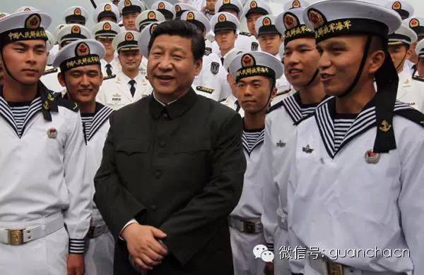 图4:2012年12月8日,习近平考察广州战区,在“海口”舰上视察时,与水兵亲切交谈。