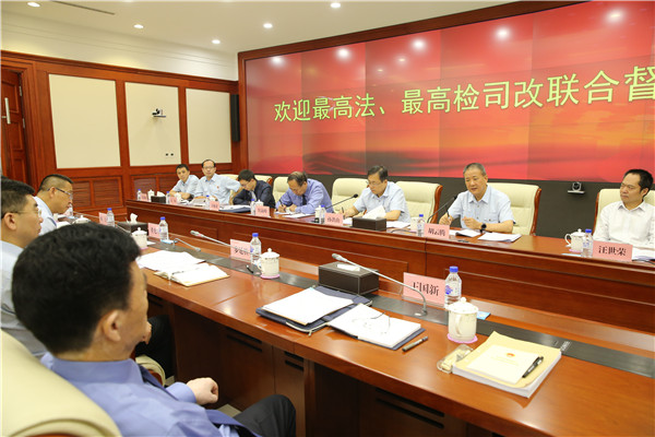 6月6日至9日,最高人民法院审判委员会专职委员、第二巡回法庭庭长胡云腾率最高人民法院、最高人民检察院联合督察组,督察黑龙江、吉林两省司法改革工作。督察组分别听取了两省政法委、法院、检察院及组织、编制、人社、财政等部门关于司法改革工作落实情况的汇报,走访基层法院、检察院并与干警代表座谈,查阅司法改革相关文件以及有关案件卷宗等材料,并分别向两省反馈了督察意见建议。