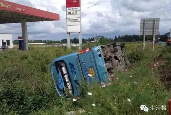 哈肇公路双井道口附近客车翻进沟 4人受伤(图)