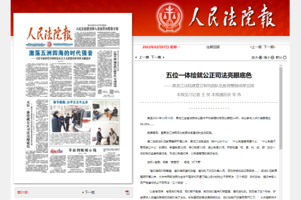 《人民法院报》:五位一体绘就公正司法亮眼底色