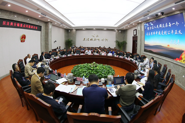 最高人民法院民法典编纂工作研究小组办公室刘敏、吴兆祥等有关同志参加会议。全国人大法工委民法室同志介绍民法典物权编、合同编的起草背景、主要思路。辽宁、贵州、河北、上海等15个省(直辖市、自治区)高级法院民商事审判部门的20名代表就物权编、合同编重点问题进行研讨。