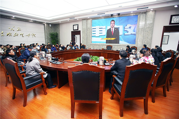 在审委会会议室,大家对一上午的参观积极发表了自己的感受,并且互相交流了参与审判工作时的体会与心得。