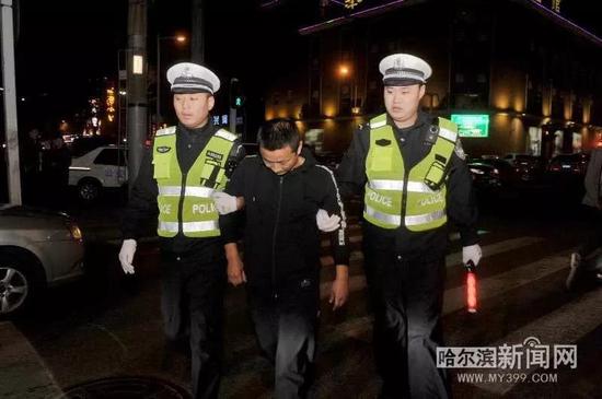 当晚21时10分许,交警香坊大队民警在菜艺街与司徒街路口设卡执勤,发现一辆车牌号为黑A1560J的白色吉普车车流中突然停止不前。其异常的举动立即引起民警的注意并上前查看。为避免意外情况发生,民警便没有贸然向前,而是通过对讲机呼叫早已部署在周边的警力从后方迂回包抄,最终该车驾驶人被有效控制。