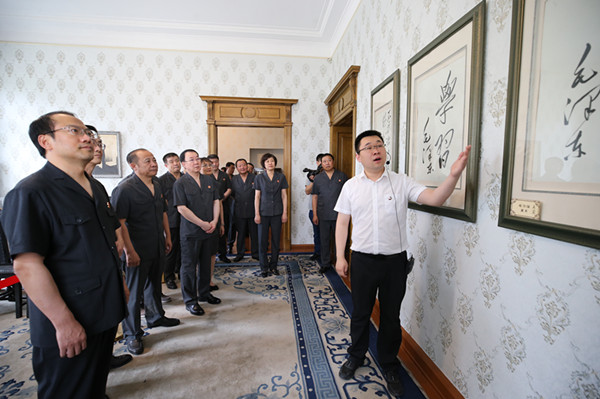 6月25日下午,省法院组织院领导、林区、哈铁直属中院的领导班子成员及处级以上干部60余人参观了位于哈尔滨市颐园街1号的革命领袖视察黑龙江纪念馆。在讲解员的解说引导下,大家参观了《党旗、党徽、党章专题》《毛泽东视察黑龙江住址复原陈列》《党和国家领导人视察黑龙江》三个主题展。通过听讲解介绍和参观历史图片、书籍、遗物等珍贵史料,追寻着老一辈领导人在艰苦年代为革命事业奋斗的足迹、感受到了革命先辈们对党和人民的赤胆忠诚,对革命事业的无比热爱。通过这次参观,大家又接受了一次思想上的深刻洗礼和党性教育,激励了牢记领袖们的嘱托、传承红色基因,为党和人民的司法事业不懈努力奋斗的工作热情,在完成法院以审判为中心的各项工作中不断作出新的贡献。