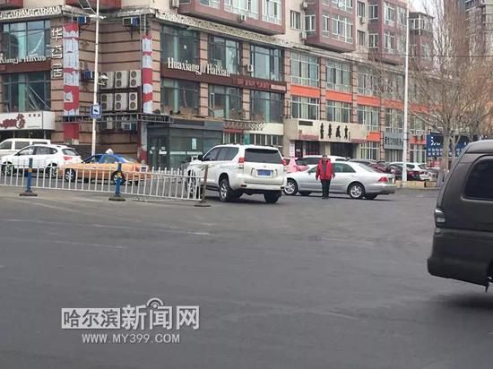 哈市征仪路一路口多车违法掉头左转交警将上移动摄录