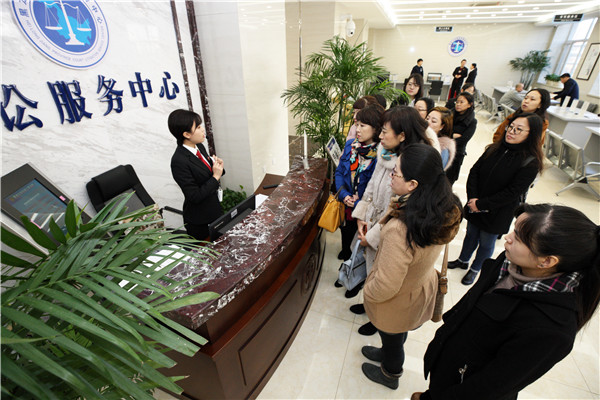 参观诉讼服务中心立案大厅 赵炳松 摄