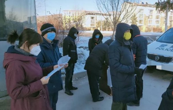 2月16日上午7时50分,伊春中院带班领导赵冶萍、值班长徐景伟、值班干警李春波和黄晨旭、值班法警闫海军、司机张力伟佩戴袖标和防护用具提前上岗,认真履行居民小区出入人员登记职责,对小区进出人员和车辆详细询问来向、去处并进行登记。严谨细致地工作态度得到了小区居民的一致认可和肯定。