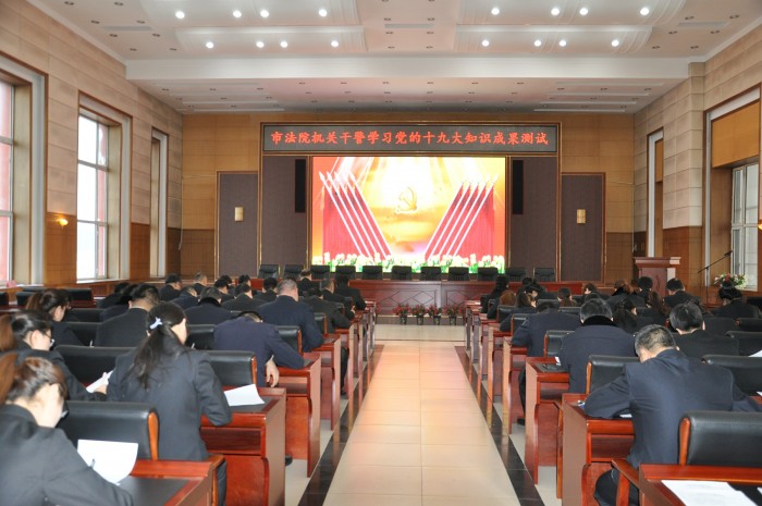 12月8日上午8:30,伊春市中级人民法院在七楼会议室对本院机关全体干警进行党的十九大知识成果测试。