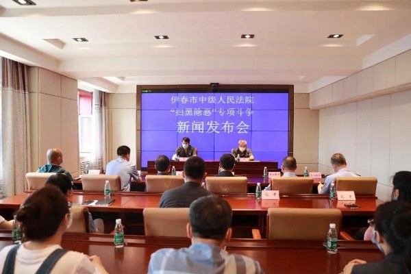 7月8日,伊春中院召开新闻发布会,通报全市法院扫黑除恶专项斗争开展情况。