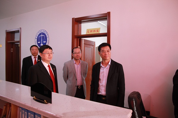 4月18日至19日,省法院审判委员会专职委员李大伟带领工作组,深入哈铁两级法院,就法院窗口服务突出问题集中治理工作进行专项督导检查。哈铁中院党组书记、院长陈永刚陪同检查。