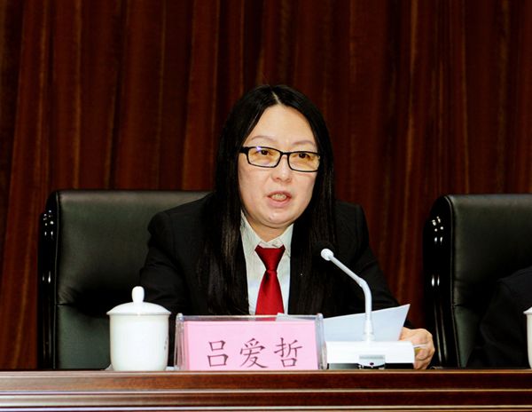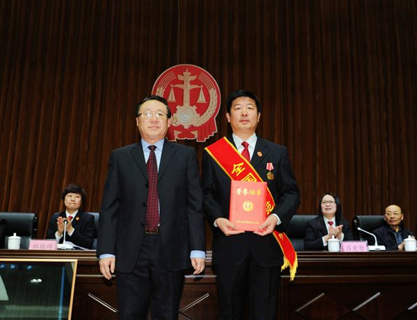 省法院副厅级审判员、政治部副主任吕爱哲宣读最高人民法院关于表彰全国模范法官的决定。