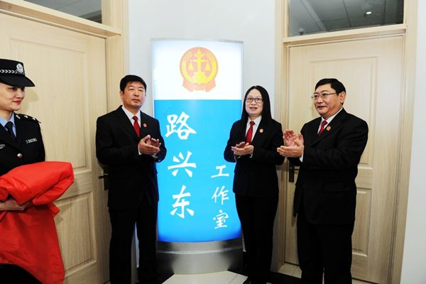 省法院副厅级审判员、政治部副主任吕爱哲为“路兴东工作室”揭牌。