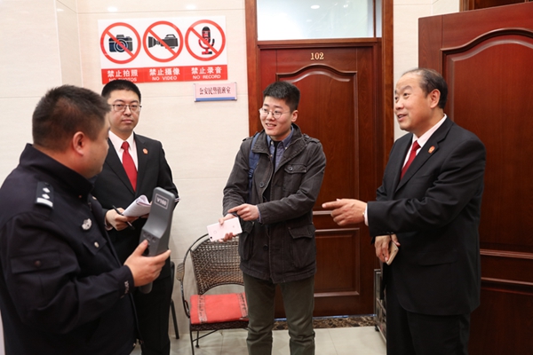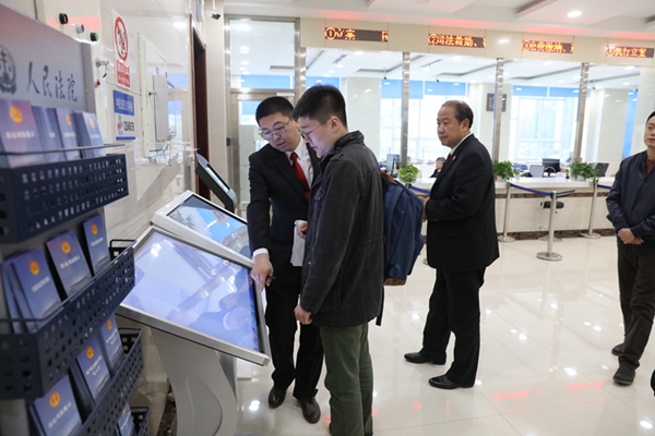 采访结束后,佳木斯中院党组成员、政治部主任吕志伟和相关工作人员,为闫睿一行举办了一次“微型”的“公众开放日”活动,向他们逐一介绍了法院的各个功能区域和运行使用情况。