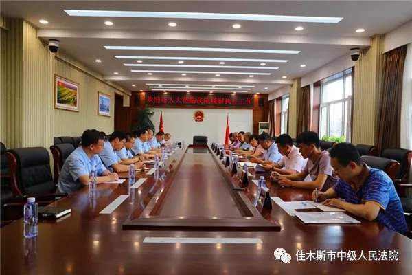 6月6日,由佳木斯市人大常委会副秘书长李一琳,佳木斯市人大内司委主任委员王玉明,副主任委员李万平以及黑龙江省、佳木斯市人大代表组成的视察组来到佳木斯市中级法院,对佳木斯市两级法院执行工作情况进行视察并举行座谈会。座谈会由佳木斯中院党组副书记、常务副院长刘雪峰主持。