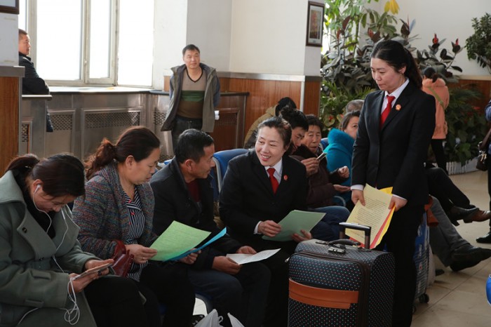 为提高群众依法维权意识,有效维护消费者的合法权益,在“3•15”消费者权益日来临前日,佳铁法院青年先锋队在党组成员、副院长张淑君的带领下,走进佳木斯火车站、西林公园两个人流量大的场所开展消费者权益保障法律知识宣传。