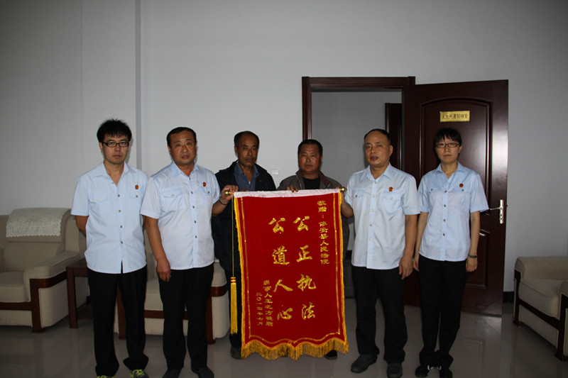 近日,依安县解放乡村民许兴友给依安县人民法院送来一面锦旗“公正执法、公道人心”,向阳春法庭干警表示感谢。