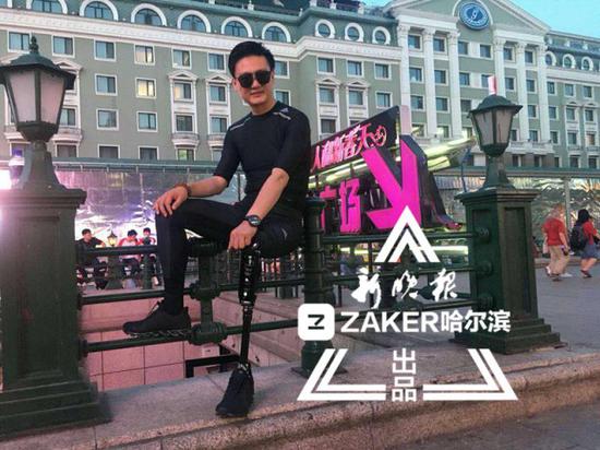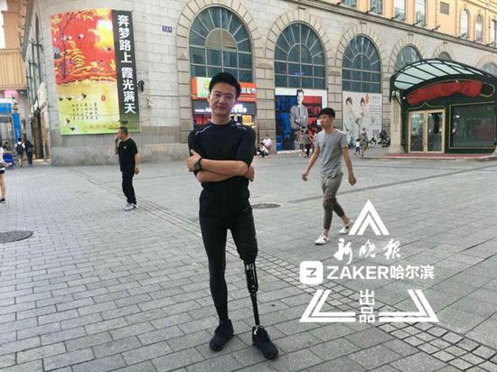 傍晚的哈尔滨,依旧热浪袭人。2 日 19 时许,中央大街上出现了一个身着短袖运动套装大步流星行走的小伙儿。帅气的脸和右腿短裤下露出的黑色假肢让人侧目。