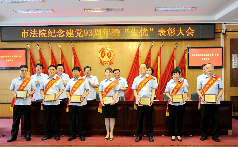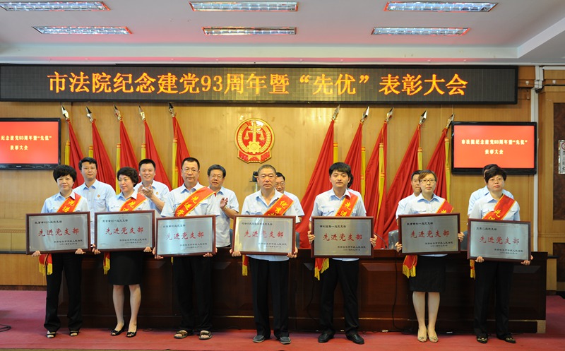 为热烈庆祝中国共产党建党93周年,扎实开展党的群众路线教育实践活动,着力提高党员素质,充分发挥党组织的战斗堡垒作用和共产党员的先锋模范作用,不断深化司法为民实践,认真开展好学习型党组织建设和争先创优活动,努力营造学先进、促先进、表彰先进的浓厚学习氛围和热潮,7月1日,齐齐哈尔中院隆重召开纪念中国共产党建党93周年暨“先优”表彰大会。