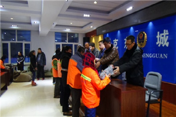 12月10日,克东县人民法院政工科长闫昊代表法院来到城管局,同政法委、公安局、检察院司法局代表一起为环卫工人送来了棉鞋和手套等御寒物品,对冒着严寒酷雪奋战在一线的环卫工人表示慰问,感谢他们为创造优美洁净的环境所付出的辛勤劳动,希望他们注意身体,继续发扬不怕苦、不怕脏、不怕累的精神,为文明城市的建设贡献力量。